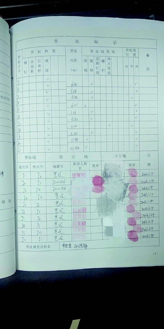 “李海龙(化名)本人当时对测绘宗地图及界址点距离都进行了签字确认,并未提出异议,程序上并不存在问题。”该负责人拿出了地籍调查表,记者发现在宗地草图上确有李海龙本人及其邻居的签名,在界址表上也有两人的签名和手印。