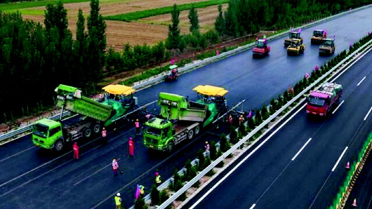 滨莱高速铺设沥青。