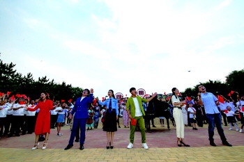 “我爱这蓝色国土,神州万里飞渡,经略海洋,走向深蓝,中华复兴我们抒写蓝图……”7月15日下午,一场主题为“我爱这片蓝色的国土”的快闪活动在日照海滨国家森林公园海水浴场旁的广场上演。