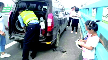 本报7月17日讯(记者 徐艳 通讯员 李继玲) 7月12日10时许,日照高速公路交通警察支队东港大队民警执勤巡逻至日兰高速西湖水库大桥时发现:一辆面包车正停在桥面处,此时桥面车流量较大,极易发生事故。民警立即将警车停在该车辆后方开启警示灯并摆放警告标识牌后,便立刻上前了解详情。