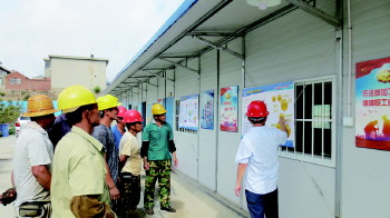 区社保中心工作人员走进建筑施工工地,现场为农民工讲解工伤保险政策知识。