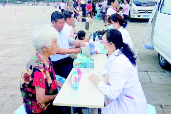 本报文登7月17日讯(通讯员 丁欣欣) 为增强居民口腔保健意识,引导居民养成健康生活方式,日前,文登区口腔医院医务人员到广场开展以“关爱口腔幸福生活”为主题的口腔义诊活动。