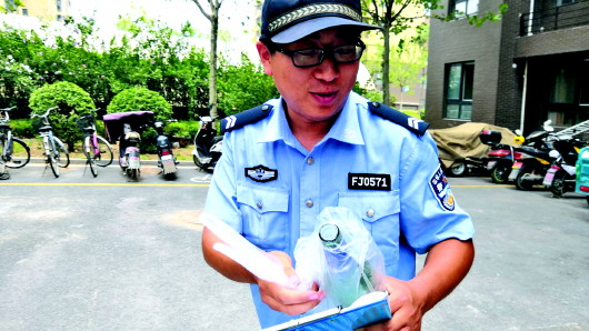 ◤民警在排查后带走一个啤酒瓶。