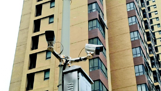 ▲济南腊山苑小区已经将部分监控摄像头调向楼上。