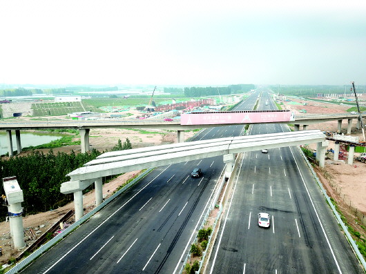 正在跨越济广高速的大东环项目。 本报记者 朱贵银 摄