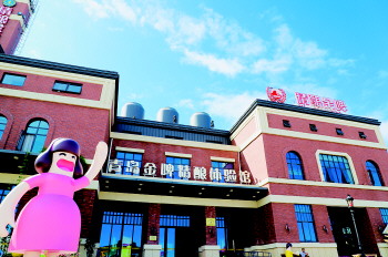 在金沙滩啤酒城内,到处可以看到哈舅系列形象产品。