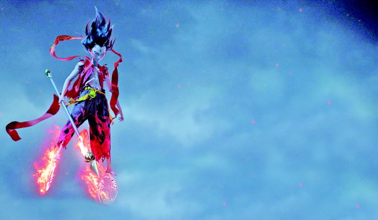 不论内容还是形式,电影《哪吒》对于观众心目中哪吒的形象确实颠覆非常多。首先是在哪吒的外在形式上,传统的哪吒是那种骑着风火轮、还有点萌的娃娃。在电影《哪吒》的画面中,哪吒不仅有着大黑眼圈,还画着宽宽的眼线,被网友戏称为“烟熏妆”;咧嘴笑时露出大嘴、大板牙,塌鼻子,称其为“最丑哪吒”并不为过。邪魅的笑容,吊儿郎当的走路架势,这一版的哪吒,有点古惑仔的样子,但这都符合哪吒魔童转世的定位。在电影的后半段,魔童成为英雄,“帅哪吒”横空出世,前后形象对比产生的反差,从视觉上奠定了影片非常“燃”的基调。