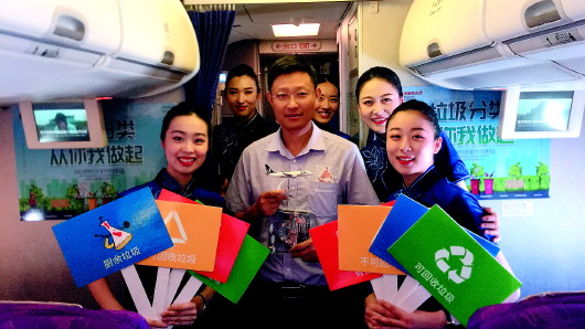 7月24日,山航客舱部青岛大队党员先锋岗阚津鲁雁组在SC8737青岛-长沙航班上举办了“坚守初心、勇担使命——党员先锋岗阚津鲁雁组带您垃圾分类”主题机上特色活动。