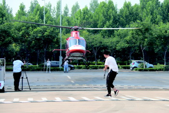 26日上午,济宁高新区应急管理局组织社发、公安、消防等相关部门联合在明治医药(山东)有限公司开展危化品事故应急救援演练。本次演练分为应急装备展示、单项技能展示、危化品事故救援演练三个部分。高新区科力光电、浩珂科技等6家企业生产的消防无人机、水型灭火器等应急装备进行了展示。图为救援直升机抵达现场。