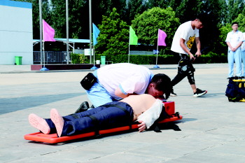 心肺复苏和人工呼吸实际操作。 本报记者 邓超 摄
