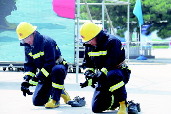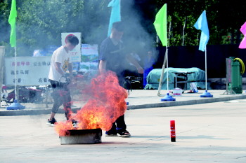 本次演练分为应急装备展示、单项技能展示、危化品事故救援演练三个部分。演练开始前,来观看演练的人们饶有兴致地参观了高新区的科力光电、浩珂科技等6家企业生产的消防无人机、水型灭火器等应急装备展示。同时,由明治医药(山东)有限公司职工进行心肺复苏实际操作、战斗服装穿戴、空气呼吸器佩戴,水带水枪实际操作等展示,安立消防向大家展示了水型消防器材灭火。