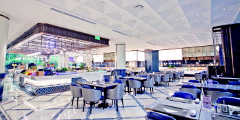 全新装修的水青咖啡苑,730平方米的用餐环境,是酒店内唯一全日提供美食的餐厅,环境优雅,温馨舒适,东、西相对的落地窗造就宽敞明亮用餐环境。餐厅为宾客提供种类繁多、品质上乘的零点菜品,亚洲和国际美食一应俱全;同时设有定期变换的时令特色自助餐,开放式的厨房与餐台结合,创造互动式餐饮体验,饕餮美味尽收眼底。