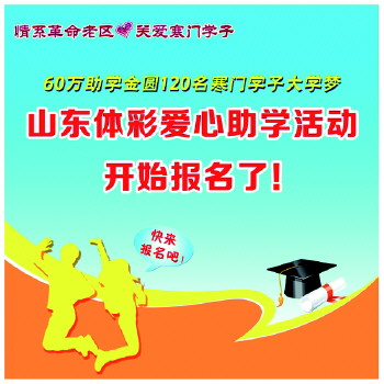 又是一年盛夏时,这个夏天,对于莘莘学子而言,最大的幸福莫过于金榜题名,而有些学子的忧愁却是被大学录取但因为家庭困难无力圆梦大学。为了减少这种遗憾,为社会培养更多的栋梁之才,山东体彩今年继续开展“情系革命老区 关爱寒门学子”爱心助学活动,今年的活动由山东省体育彩票管理中心、大众网联合举办,将为全省120名贫困大学新生每人提供5000元助学金,总共60万元助学金倾情资助优秀寒门学子圆梦大学!