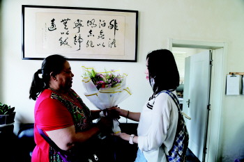 7月29日上午,记者在青岛公交市北巴士第六分公司见到了李爱莲和被救助的中暑女孩。“我上车之后就有点站不住了。”被救助的女孩江志萍说,她感觉马上就要晕倒的时候,一双手拉着她把她扶到了座椅上,并用扇子给她扇起风来。“李阿姨的行为让我们特别感动。她的热心举动,向大伙诠释了青岛巴士十米车厢传递的城市温度。”公交市北巴士第六分公司党支部书记黄爱君说。