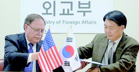◥今年2月10日,韩国和美国代表在首尔草签第10份《防卫费分担特别协定》。