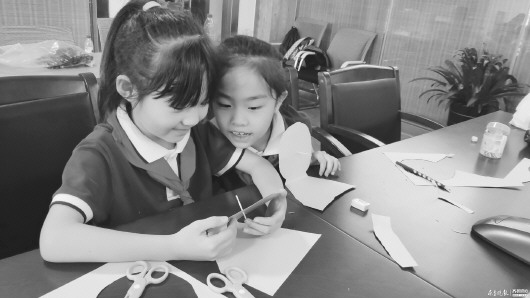 学生亲手制作一本线装书,学习剪一颗五角星。