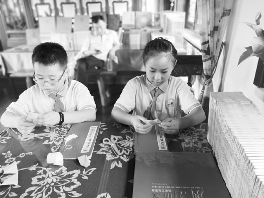 青龙街小学韩辰宇同学表示,自己最喜欢制作线装书的环节,这是自己第一次制作,也从中了解到很多历史知识。“此次研学,我对济南的风土人情有了更多了解,还学会了拓印,感觉很有意义。”济师附小四年级六班孟心冉同学说。