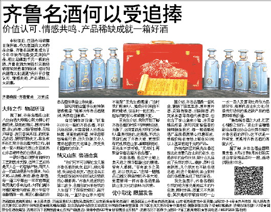 “集高端鲁酒之大成,汇匠心精酿之佳作。”是山东省糖酒副食品商业协会会长薛剑锐对齐鲁名酒的评价。这不仅是一种肯定,更是对齐鲁名酒的高度认可。