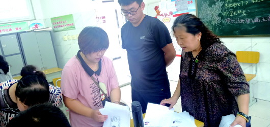 8月3日,山东高职第二批单独招生报名第一天,在济南市历城区报名点,53岁的刘相苹拉着女儿、女婿一起来了,现场热情十足地咨询着报名方式。