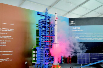 九天宇宙探索馆内展示的模拟火箭发射。 张威 摄