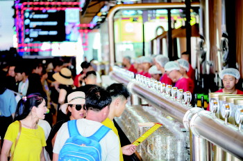 “我们在进行大篷建设的时候就采用了先进的设计理念和高标准的装修水平,为我们全年的经营打好基础。”杨世珉介绍,大篷拥有坐落在青西金啤体验馆内的精酿加工厂做后盾,游客一年四季来啤酒城都可以喝到新鲜的精酿。