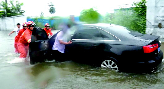 11日上午10时许,济南消防接到群众报警:孙村春晖路因连续降雨导致积水,两辆轿车抛锚水中。济南消防孙村中队立即赶赴现场,消防员涉水靠近被困车辆,然后将人、车转移至路边安全地带。