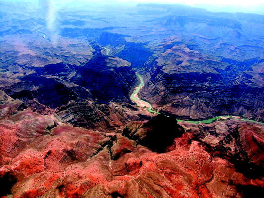 美国亚利桑那州大峡谷闻名遐迩,位于美国西南部,亚利桑那州西北与犹他州、内华达州交界处凯巴布高原的三角地带。由于科罗拉多河穿流其中,故又名科罗拉多大峡谷。这一大片隆起的高原,最深处达1500米,地形险峻绮丽,地质多由花岗石构成,色彩夺目,予人身置其间,有如走进地质博物馆之感。