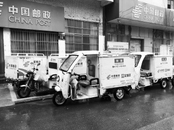 城区车站西路附近的一家邮政快递公司网点仍在营业。 齐鲁晚报·齐鲁壹点记者 褚思雨 摄