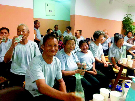 在官庄街道敬老院临时安置点,受灾群众喝上了送来的恒大冰泉矿泉水。