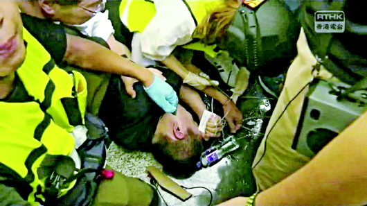 13日晚,香港机场,环球网记者付国豪被示威者非法拘禁殴打。面对暴徒的拳头,他大喊:“我支持香港警察,你们可以打我了!”被救出时,他头上有很多血。在被送出机场时,他在担架上说:“I love Hong Kong,谢谢,thank you。”