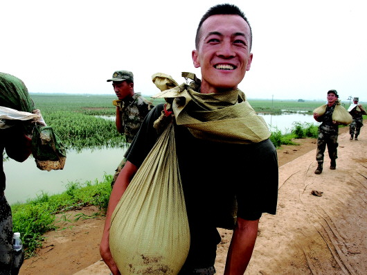 台风已然过去,救灾仍在路上。在封堵决堤的抢险第一线,战士们肩扛沙袋,满脚泥水;在安置点,党员干部、志愿者和医护人员等守护着群众,让大家吃上暖心的饭菜,安心地休息。