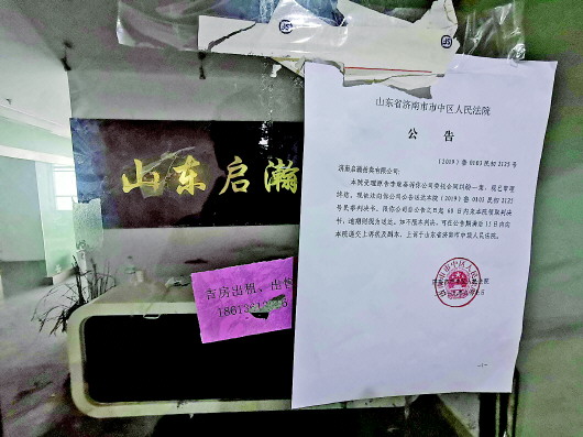 根据范先生提供的地址,8月13日下午,记者来到位于经四路万达广场A座的济南启瀚拍卖有限公司。不过,该公司已人去楼空,公司玻璃门上还贴着一纸市中区人民法院的公告,公告中称济南启瀚拍卖公司因委托合同纠纷案被起诉,限该公司60日内到法院领取判决书。