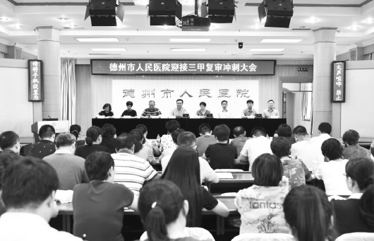 8月9日,德州市人民医院召开迎接三甲复审冲刺大会,全院上下将以端正的工作态度、饱满的工作热情积极完成各项工作,力争以优异成绩通过三甲复审。 (李梦娇 方松) 冲刺