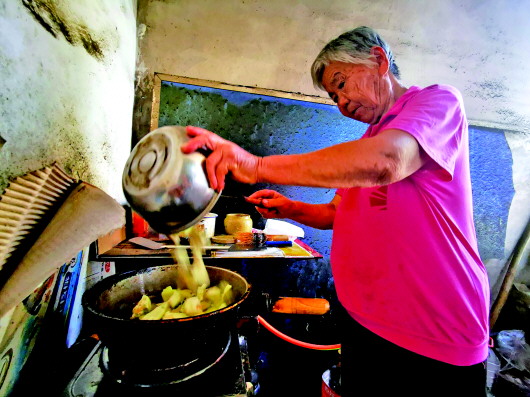 8月15日,随着积水退去,章丘皋西村村民顾克庭从安置点回到了离开三天的家。中午时分,顾克庭做了红烧茄子,和老伴吃了一顿简单却又难得的家常饭。当天,村民们集中返家,晾晒衣物、清理淤泥,已然做好了恢复生产生活的准备。 齐鲁晚报·齐鲁壹点记者 夏侯凤超 摄