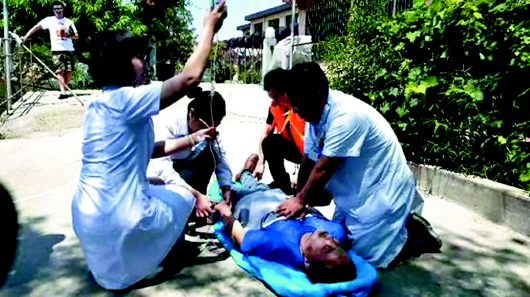 对呼吸及心跳微弱或心跳刚刚停止的溺水者,要迅速进行口对口(鼻)式的人工呼吸,同时做胸外心脏按压,分秒必争,千万不可只顾倾水而延误呼吸心跳的抢救,尤其是开始数分钟。抢救工作最好能有两个人来进行,这样人工呼吸和胸外按压才能同时进行。如果只有一个人的话,两项工作就要轮流进行,并尽快与医疗急救机构联系。