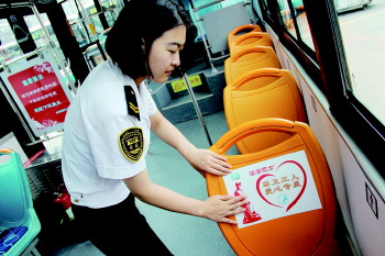 为感谢环卫工人的辛苦付出,交运温馨巴士在继爱心驿站、爱心早餐、爱心公厕之后,又在625路公交车厢内推出环卫工人爱心专座,专座设置在车厢前部第一盘座位,座位上标注了“环卫工人爱心专座”,让环卫工人在回家的路上能好好休息。