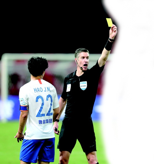 就在鲁能沉浸在进球的喜悦中时,赛场上却传出了对鲁能极为不利的消息。补时阶段刘洋回防过程中飞身跃起抬脚抢点解围时踹中阿瑙托维奇头部,主裁判在观看VAR后出示红牌将刘洋罚下。