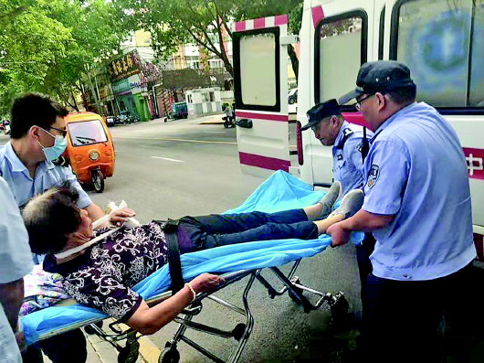 很快,120急救车赶来。120医护人员对老大娘进行了初步检查和治疗。随后,历下公安巡警二中队的中队长陈军又协助120医生将老大娘送往邻近医院。