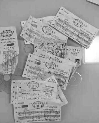 往返济宁和盐城,钱玉梅的车票存了一沓。