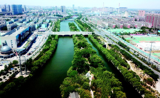 航拍小清河五柳闸。 齐鲁晚报·齐鲁壹点记者 王媛 摄