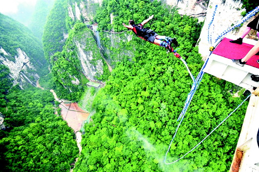 张家界大峡谷玻璃桥蹦极