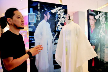 《陈情令》服装指导姬磊也带来了两大主角的服饰,吸引了不少观众驻足观看。其中,蓝忘机的服装用白色的纱丝与镂空的雕文,表现人物的清雅与仙风道骨;黑化后的魏无羡以纯黑为底色,红色为点缀,表现该角色魔气由内向外的散发。据悉,本届展览还在8月25日晚7:30,在青岛红树林度假世界典礼堂举办全国首次“影视+时尚”服装秀,邀请专业模特,着剧中服饰,配以发饰和面妆进行展示,引领时尚潮流。