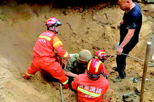 本报烟台8月27日讯(记者 闫丽君 尉伟 通讯员 孙成飞 李圣华) 26日10点左右,烟台龙口市新嘉街道张家村一挖井工地突发坍塌,一名在井内作业的工人被海砂土掩埋,生死未卜。龙口消防迅速出动赶赴现场,徒手刨挖救援。经过40分钟的生死接力救援,该工人被成功救出。