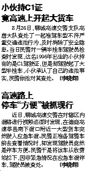 8月26日,聊城高速交警支队高唐大队查处了一起准驾车型不符严重交通违法行为,及时消除了安全隐患。当日民警对一辆半挂车驾驶员检查时发现,这名1996年出生的小伙持有的是C1驾驶证,但是却驾驶起了大型半挂车,小伙承认了自己的违法事实,民警依法对其查处。 (李晓辉)