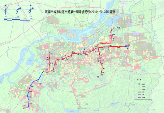 济南市城市轨道交通第一期建设规划(2015-2019年)调整图。