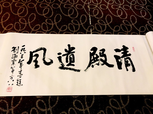 此外,值得一提的是,此件作品的三处落款也十分有趣,元植介绍说:“三处题款日期不同,但相隔时间不是很长,根据题款内容可知,这件作品的创作时间是1981年,引首和题跋是1983年补的,根据这幅画面的表现力可以推断刘海粟先生本人应该很喜欢这件作品的”。“万古此山此风雨,来看老夫浑脱舞”,刘海粟先生旺盛的创造力在艺术界也一直被传为佳话。元植说:“88岁对很多常人来说是人生即将谢幕了。但是对刘海粟先生来说还不是,他88岁还能爬黄山,说话中气十足,能写大字,其生命之旺盛在长卷最后‘喷珠吐玉献绿择红’这几个气势雄壮的字上也可以看出。所以说刘海粟先生是我们的楷模,他们生活的时代比较贫穷,战乱频生,他也是历经磨难,饱经沧桑,但他十分长寿,艺术激情一直到最后时刻仍在迸发。大家气象,高山仰止,实在令人惊叹!”