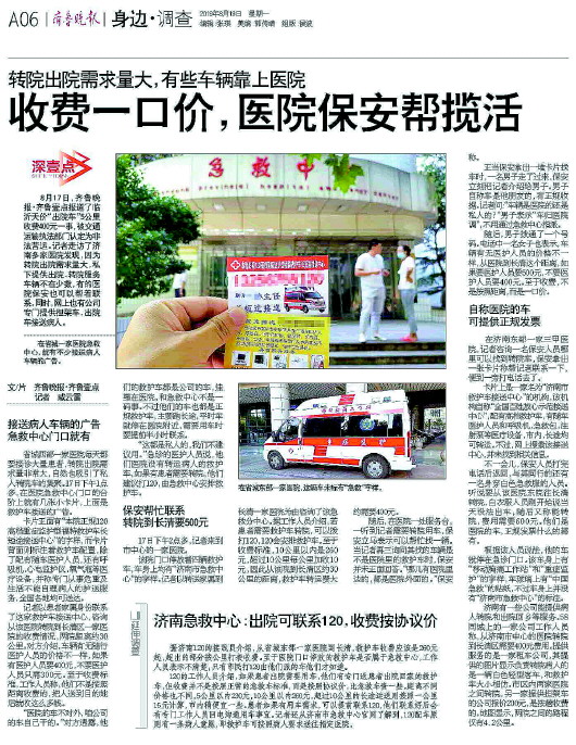 “打120急救电话时救护车能来那么快,非急救任务竟然要等这么久。”张先生告诉记者,他听120的接线员说全济南能提供非急救任务的救护车很少,但济南的医院那么多,相当一部分病人需要转院和出院回家,因此希望急救中心能增加非急救用车。