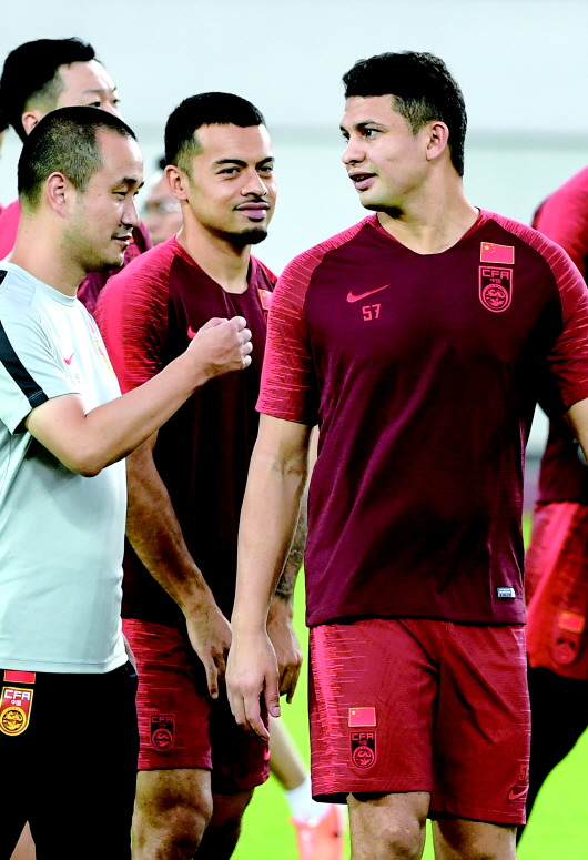◥国足集结,第一次穿上国足队服的艾克森成为媒体关注的焦点。 新华社发
