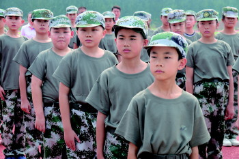 初中新生接受军训。