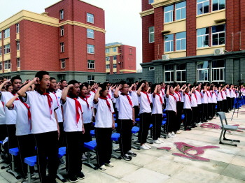 学生紧握右拳,庄严宣誓。 本报记者 邓超 摄